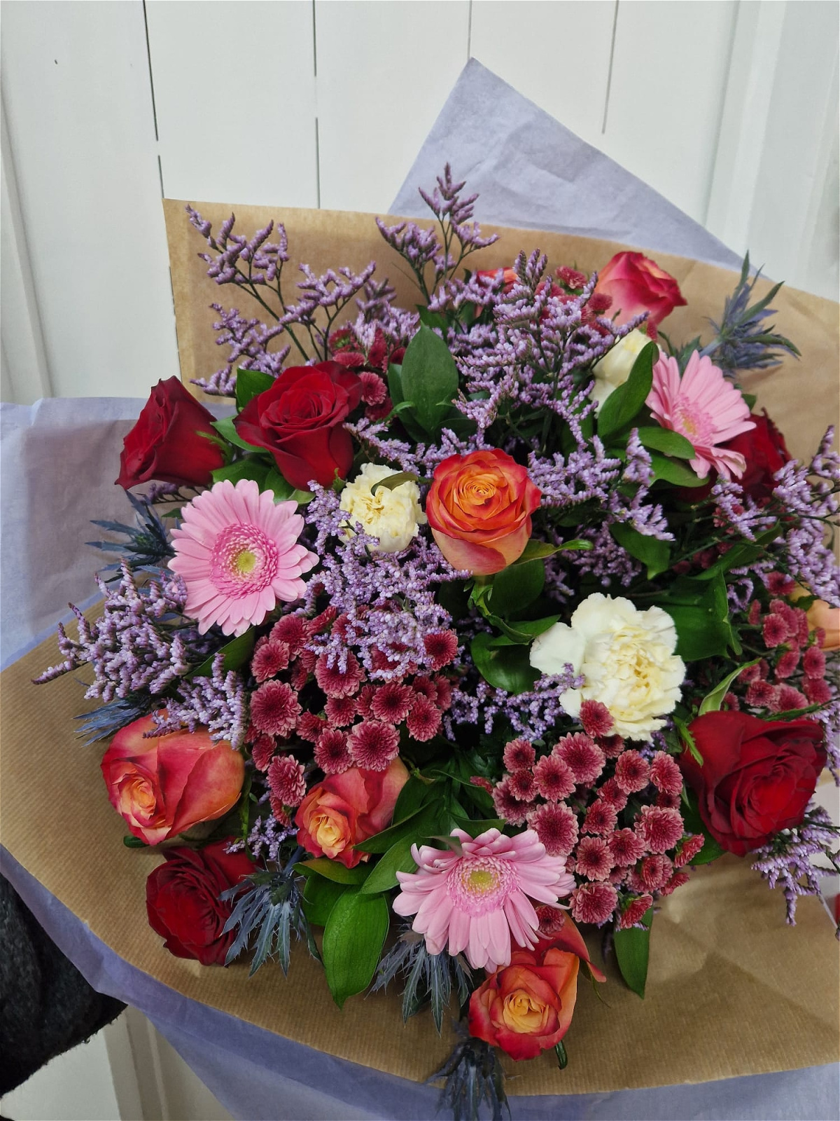 Our Valentines Day Mixed bouquet will be a florist choice bouquet, with a mix of flowers in the colours of pink, white and red.